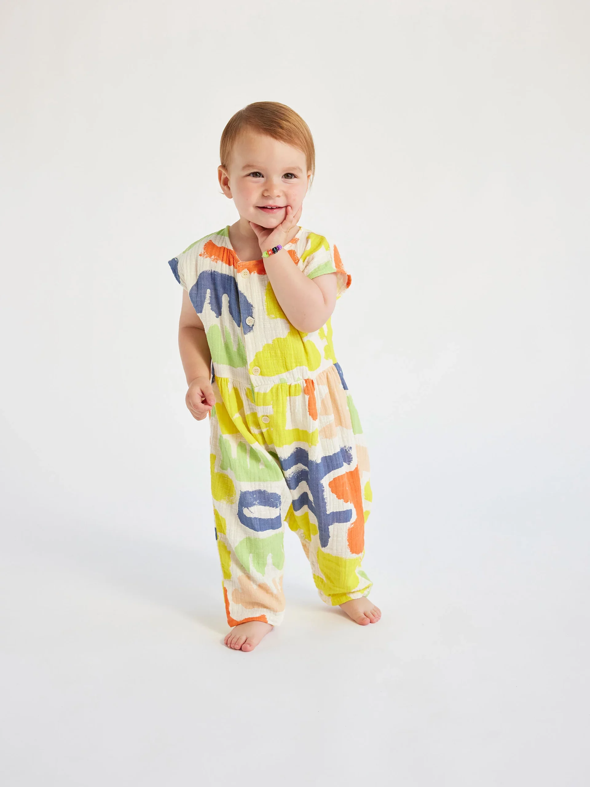 Piękny kolorowy kombinezon dla niemowląt z wiosenno/letniej kolekcji A Folk Song hiszpańskiej marki Bobo Choses.