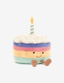Urokliwa Panda marki Jellycat w urodzinowej czapeczce z pomponem i muszce ze wstążki.