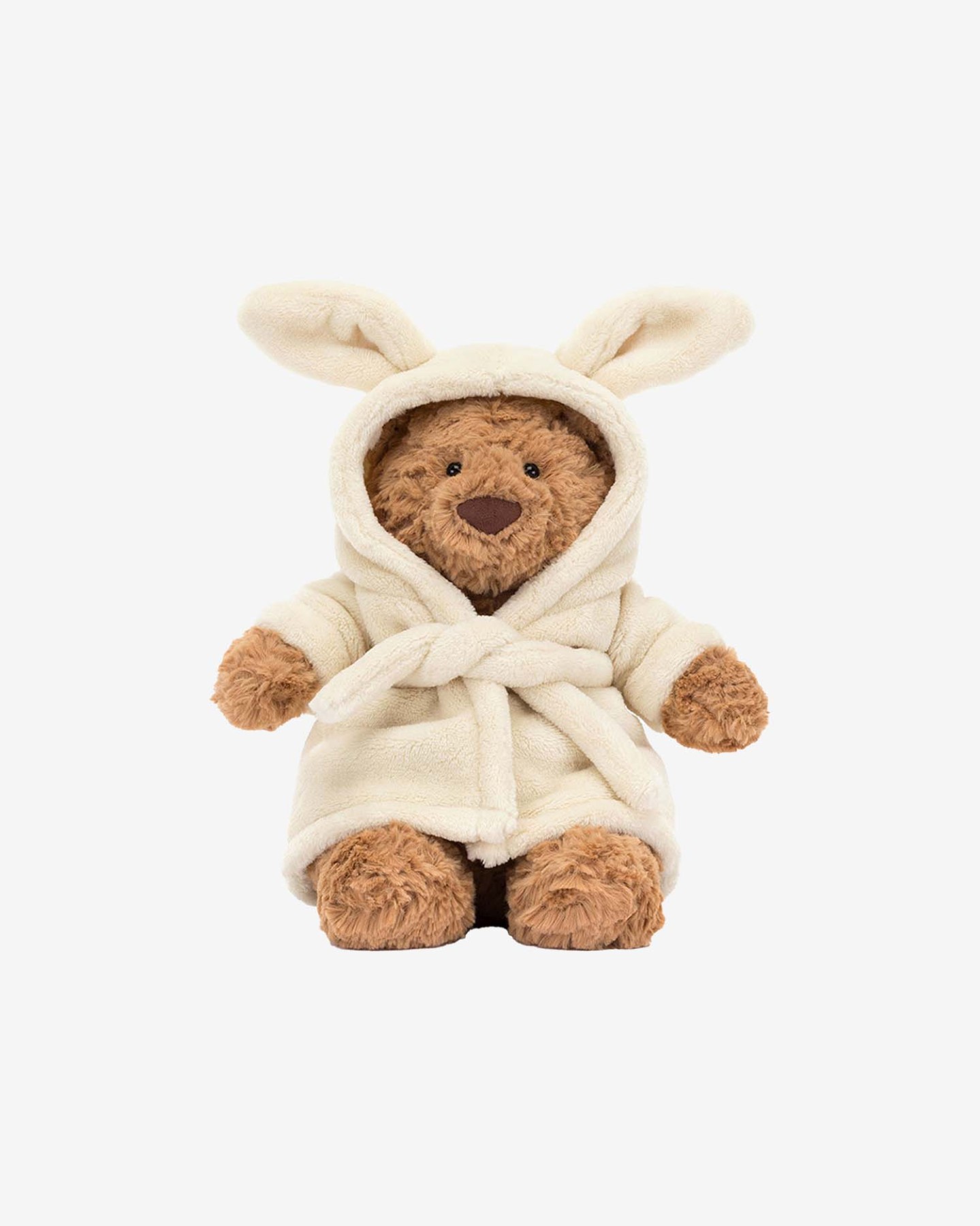 Miś Bartłomiej w uroczym szlafroku z uszami królika od Jellycat.