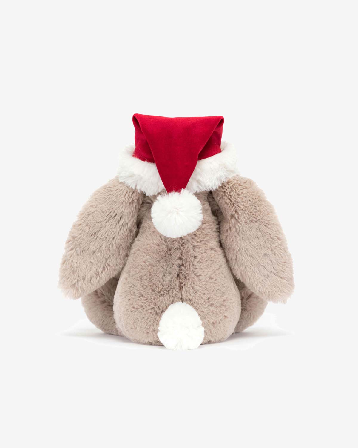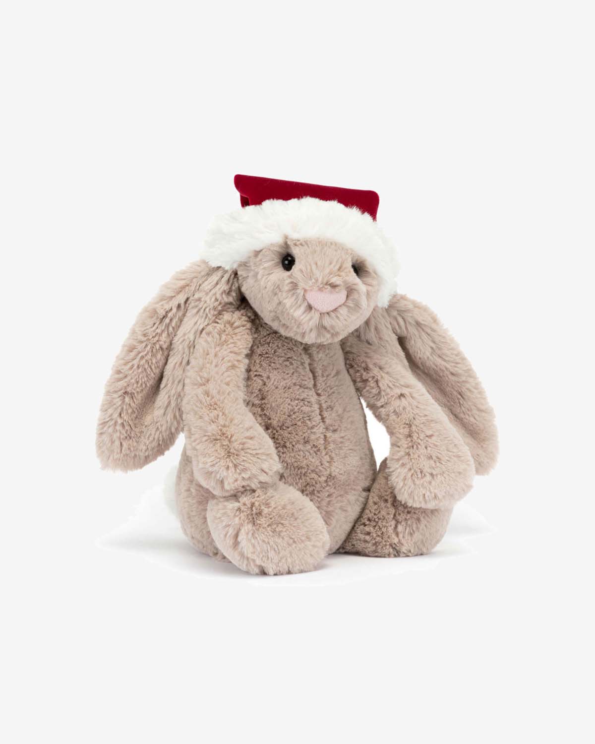 Króliczek marki Jellycat to bardzo miły i przyjemny w dotyku pluszak. Ma beżowe futerko, błyszczące oczka i wspaniałą czerwoną czapkę z pomponem.
