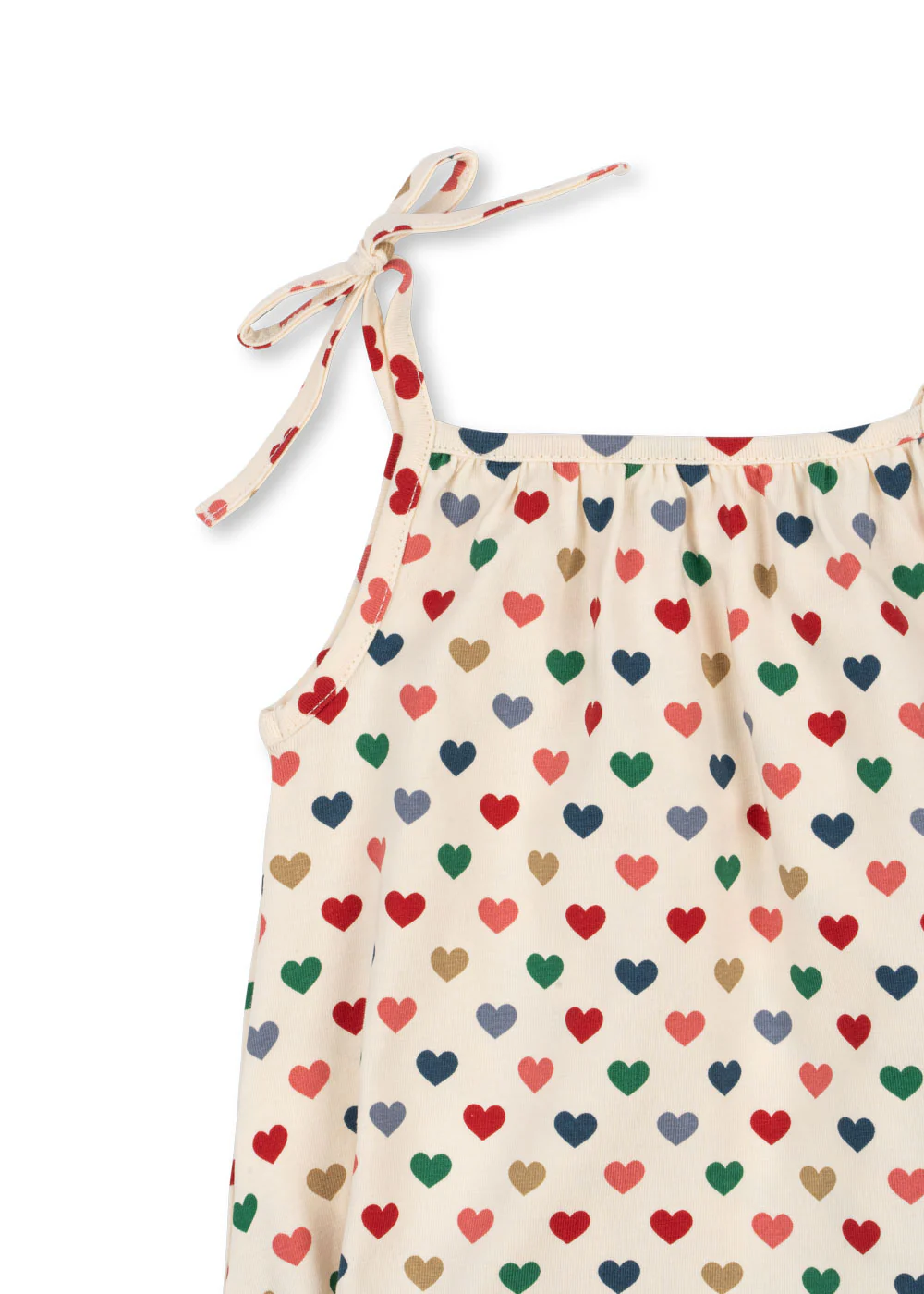 Wzór w kolorowe serduszka i delikatny krój sprawiają, że to idealny wybór na ciepłe dni.