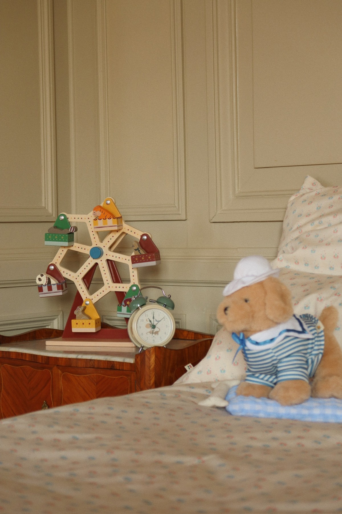 Metalowa obudowa, podwójny dzwonek i cichy mechanizm czynią go zarówno funkcjonalnym, jak i stylowym dodatkiem do dziecięcego pokoju.