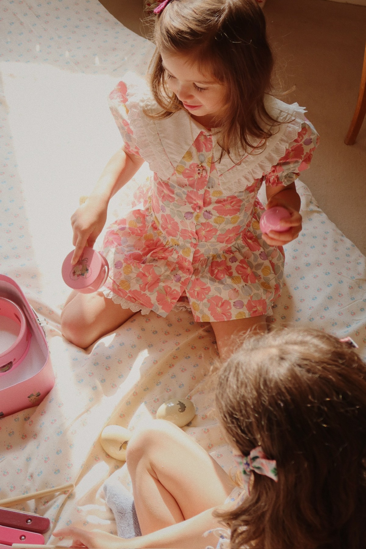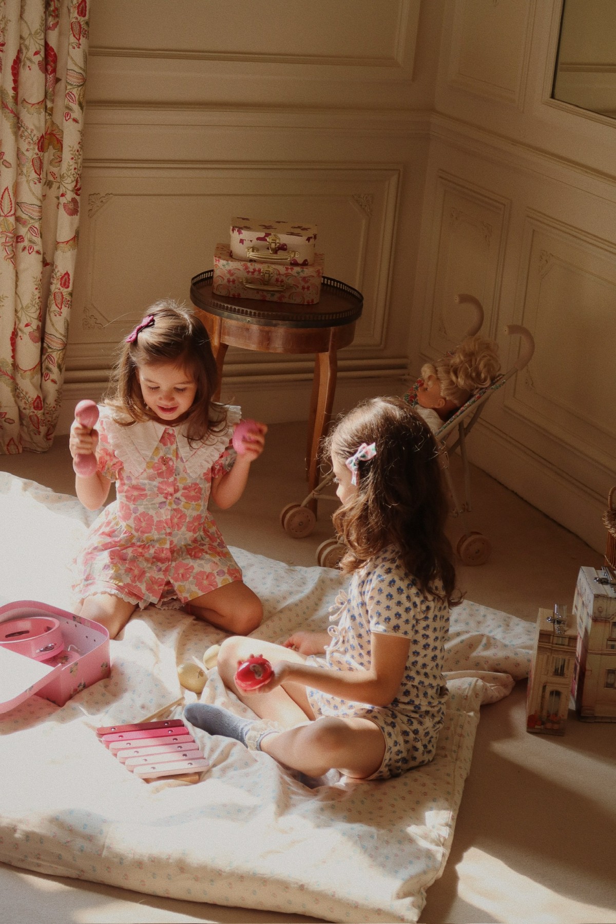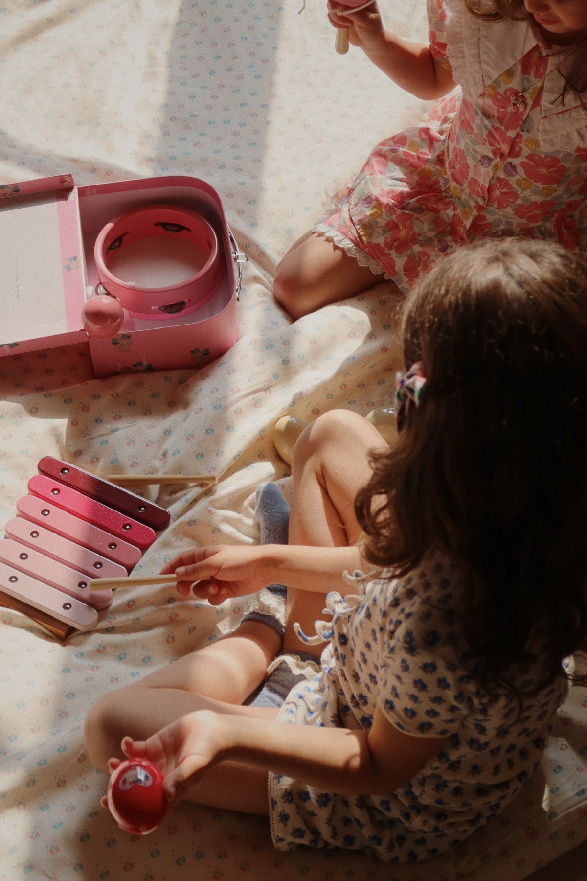 Drewniany zestaw muzyczny z nadrukiem w kotki od Konges Sløjd.