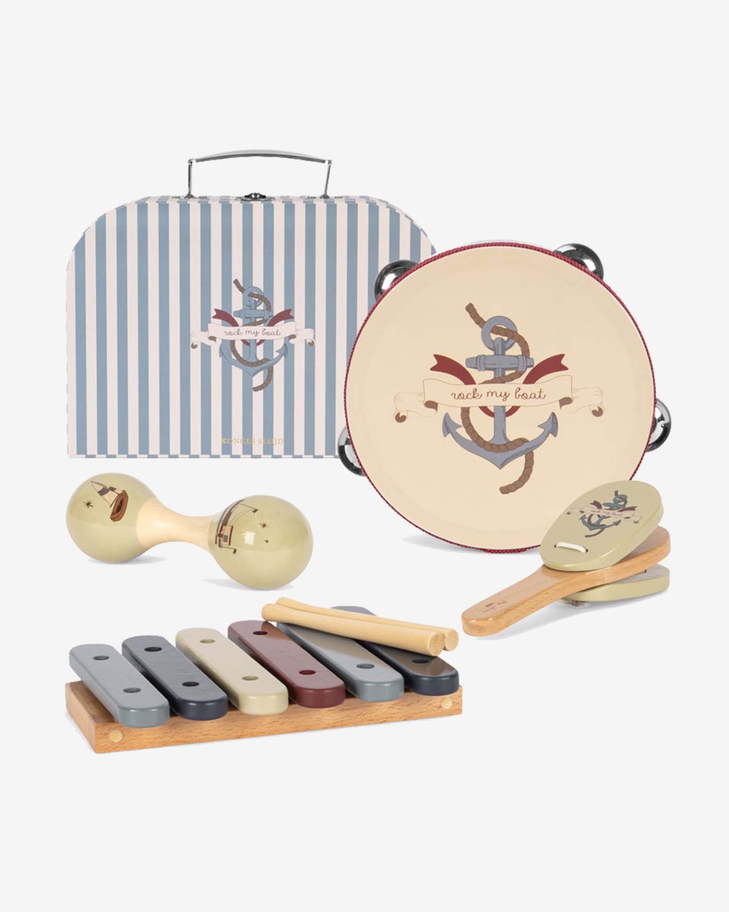 Drewniany zestaw muzyczny z motywem marynistycznym od Konges Sløjd.