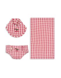 Miękkie nosidełko od Konges Sløjd, stworzone z myślą o małych opiekunach lalek. Uszyte z bawełny w różową kratkę, z elastycznymi paskami i falowanymi wykończeniami. Lekkie, wygodne i łatwe do założenia – idealne do zabawy w dom, spacer czy małą wyprawę.