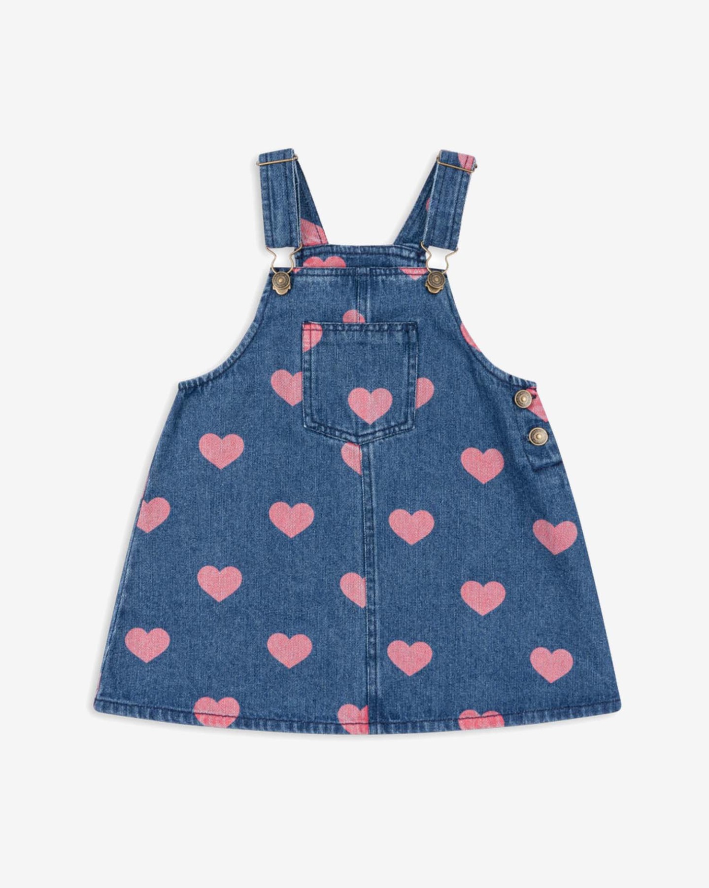 Urocza sukienka-ogrodniczka wykonana z bawełny organicznej z certyfikatem GOTS. Subtelny różowy wzór w serduszka nadaje jej wyjątkowego wdzięku. Regulowane szelki i praktyczny krój zapewniają wygodę i swobodę ruchów. Stylowy, ekologiczny wybór dla każdego malucha.