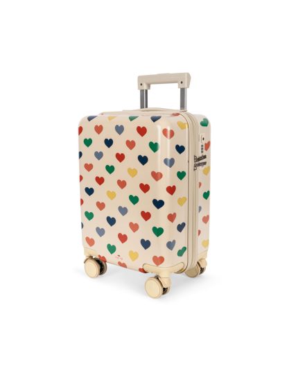 Lekka i wytrzymała walizka kabinowa w kolorowe serduszka, idealna na dziecięce podróże. Twarda obudowa, cztery podwójne kółka obracające się o 360° i wbudowany szyfrowy zamek TSA zapewniają komfort i bezpieczeństwo.