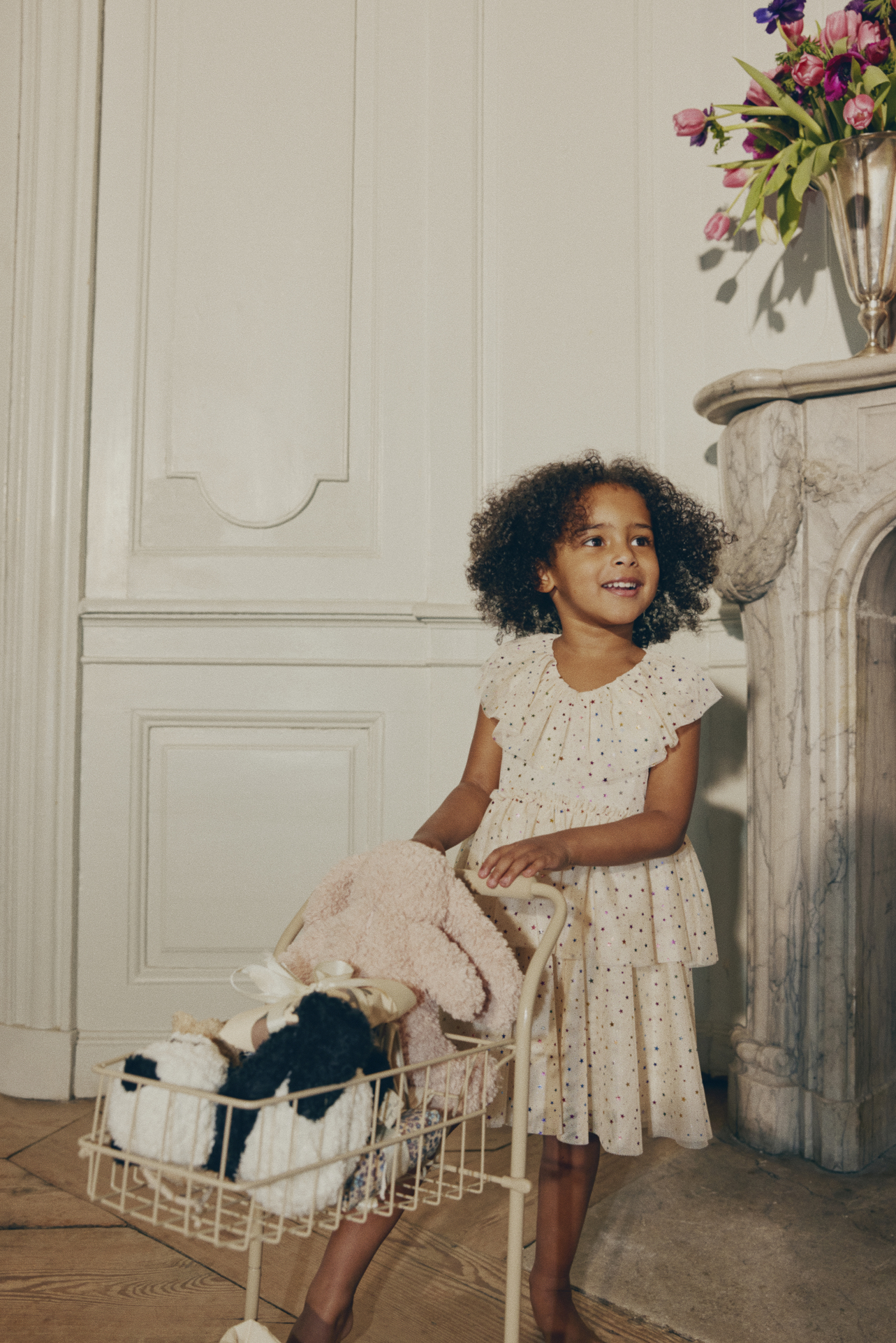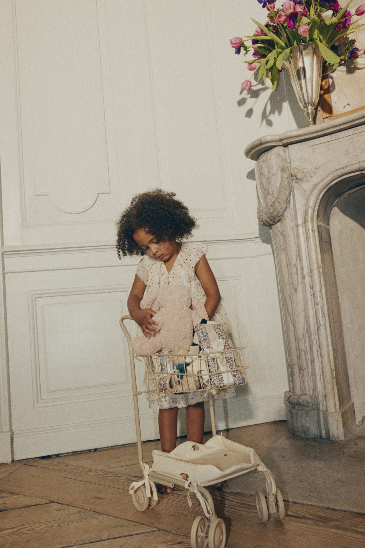Z przodu zamontowane jest siedzisko dla lalki lub ulubionej maskotki.