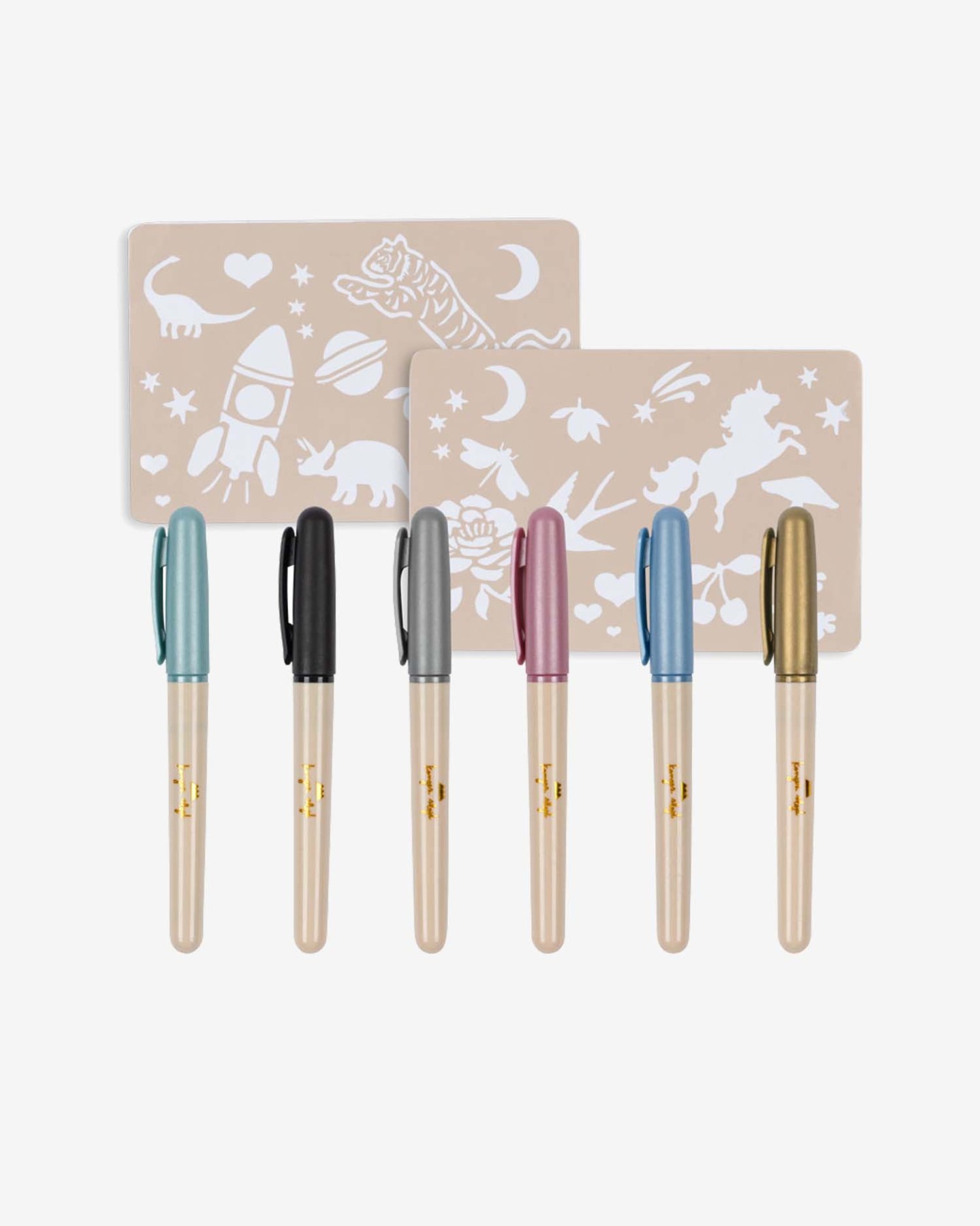 W komplecie znajduje się 6 długopisów w intensywnych kolorach oraz szablony z różnorodnymi wzorami, które ułatwiają przerysowywanie i tworzenie wyjątkowych projektów.