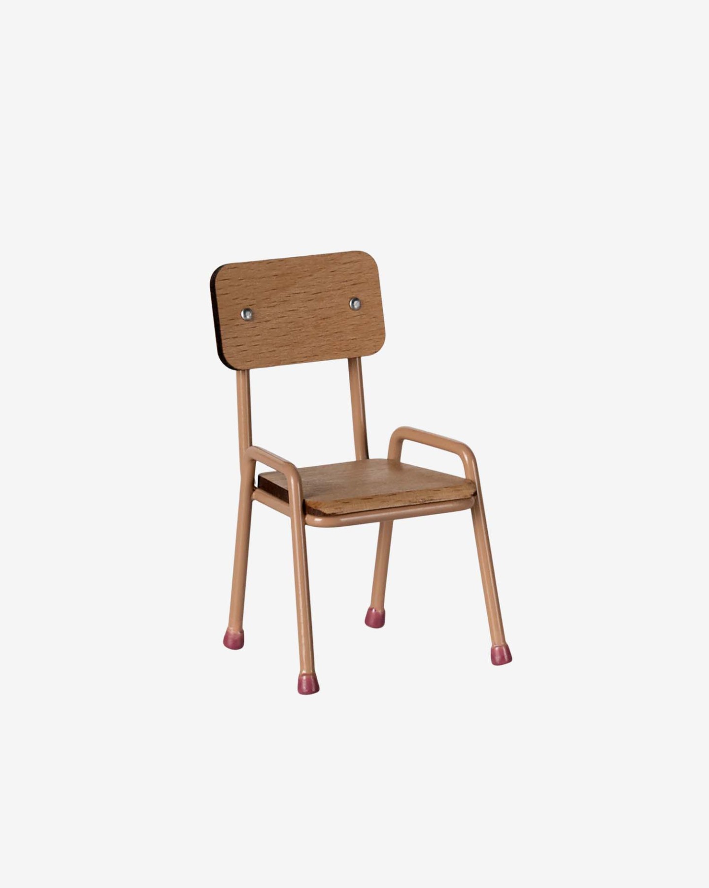 Krzesło z najnowszej kolekcji SS25 od Maileg to stylowy dodatek do mysiego domku. Wykonane z połączenia metalu i drewna w klasycznym retro stylu, ma różowe, smukłe nóżki oraz drewniane siedzisko i oparcie, które nadają mu wyjątkowego uroku.