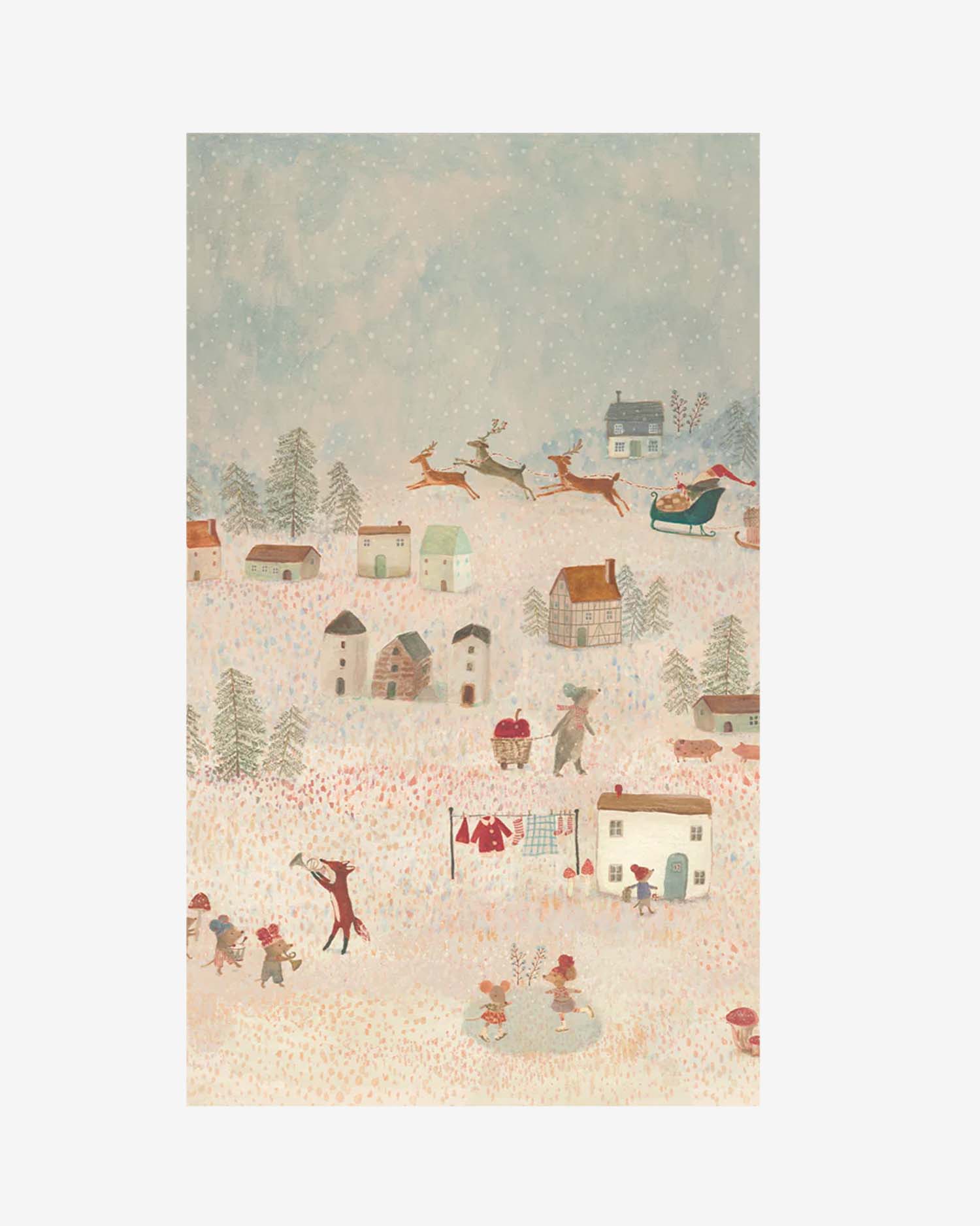 Wytrzymały papier w zimowym, retro klimacie z ilustracją namalowaną przez Dorthe Mailil tworzy magiczną atmosferę Świąt. Idealny do pakowania bożonarodzeniowych prezentów.