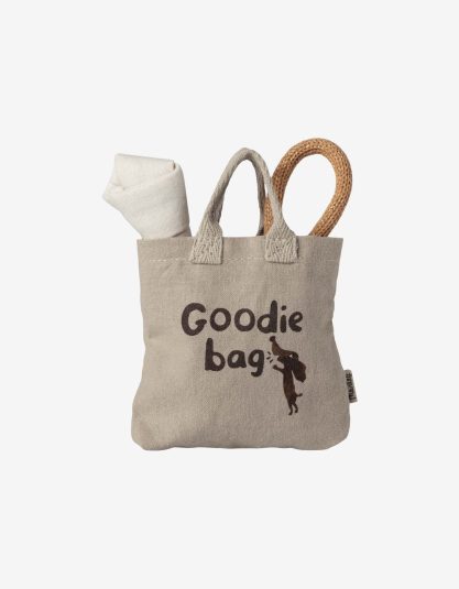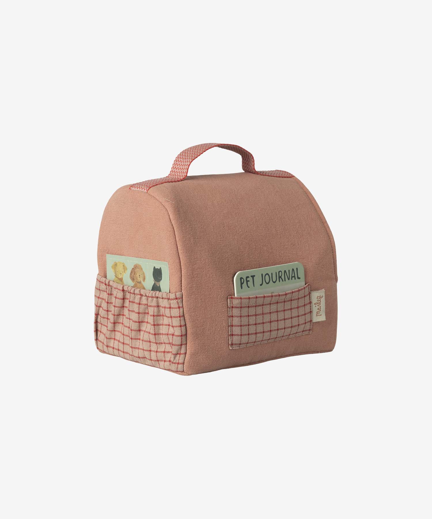 Torba posiada metkę dla zwierzaka (pet ID), dzięki której można podpisać, do kogo należy mały pupil. Pasuje do piesków Maileg z kolekcji Puppy.