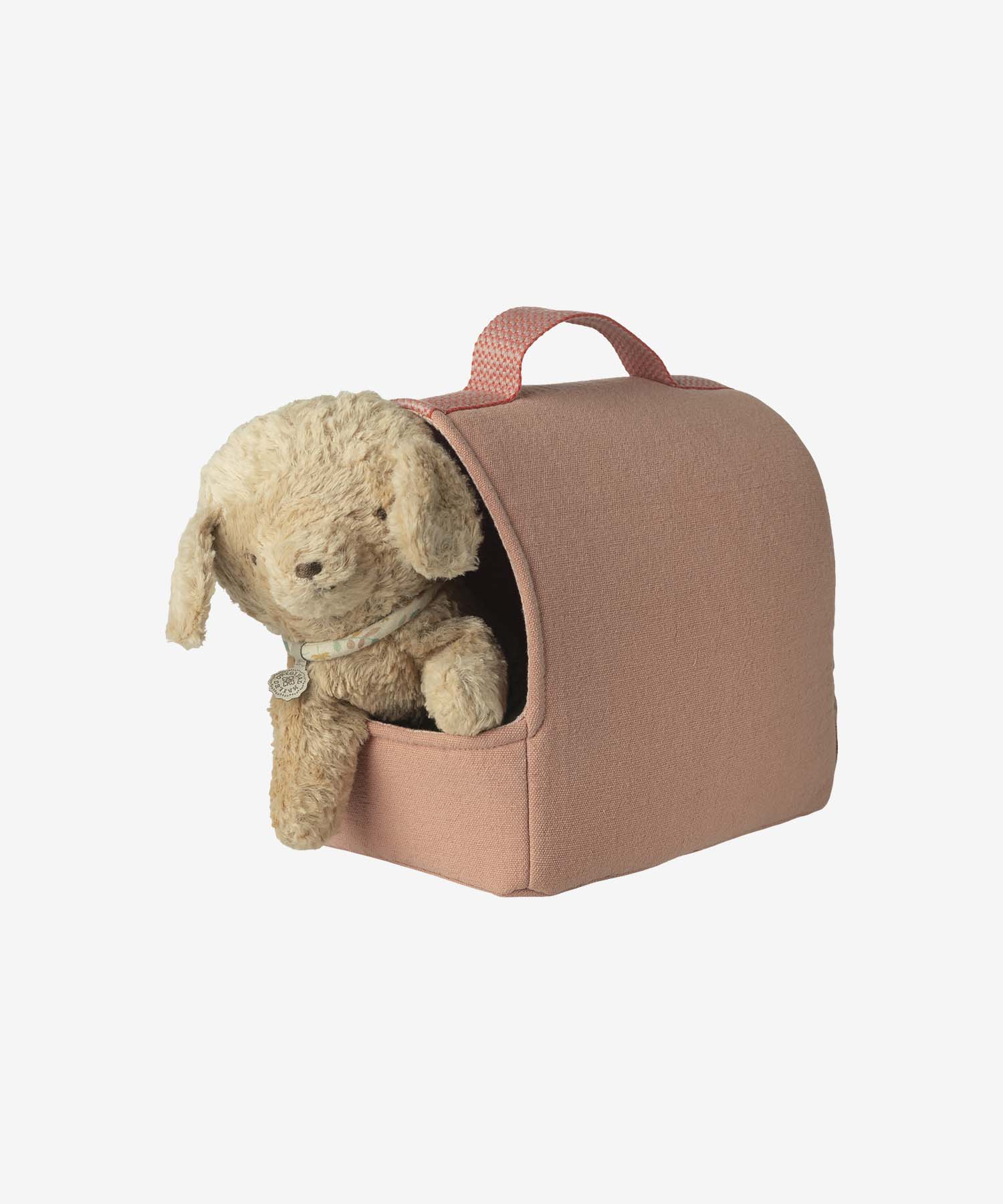 Torba dla pieska Maileg, idealna do przenoszenia małego pupila. W środku piesek może wygodnie odpocząć podczas podróży lub spaceru.