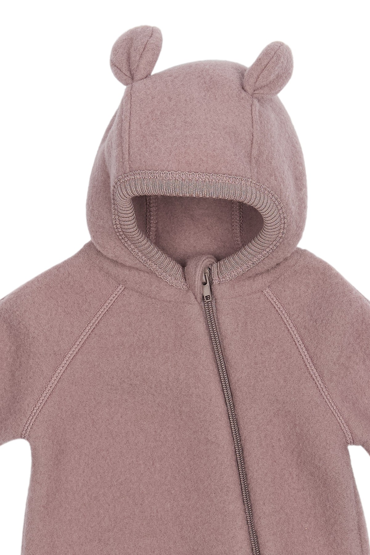 Kombinezon sprawdzi się od jesieni po wczesną wiosnę. Praktyczny zamek błyskawiczny ułatwia ubieranie, a uroczy kaptur z uszkami misia w odcieniu delikatnego różu dodaje mu wyjątkowego uroku.