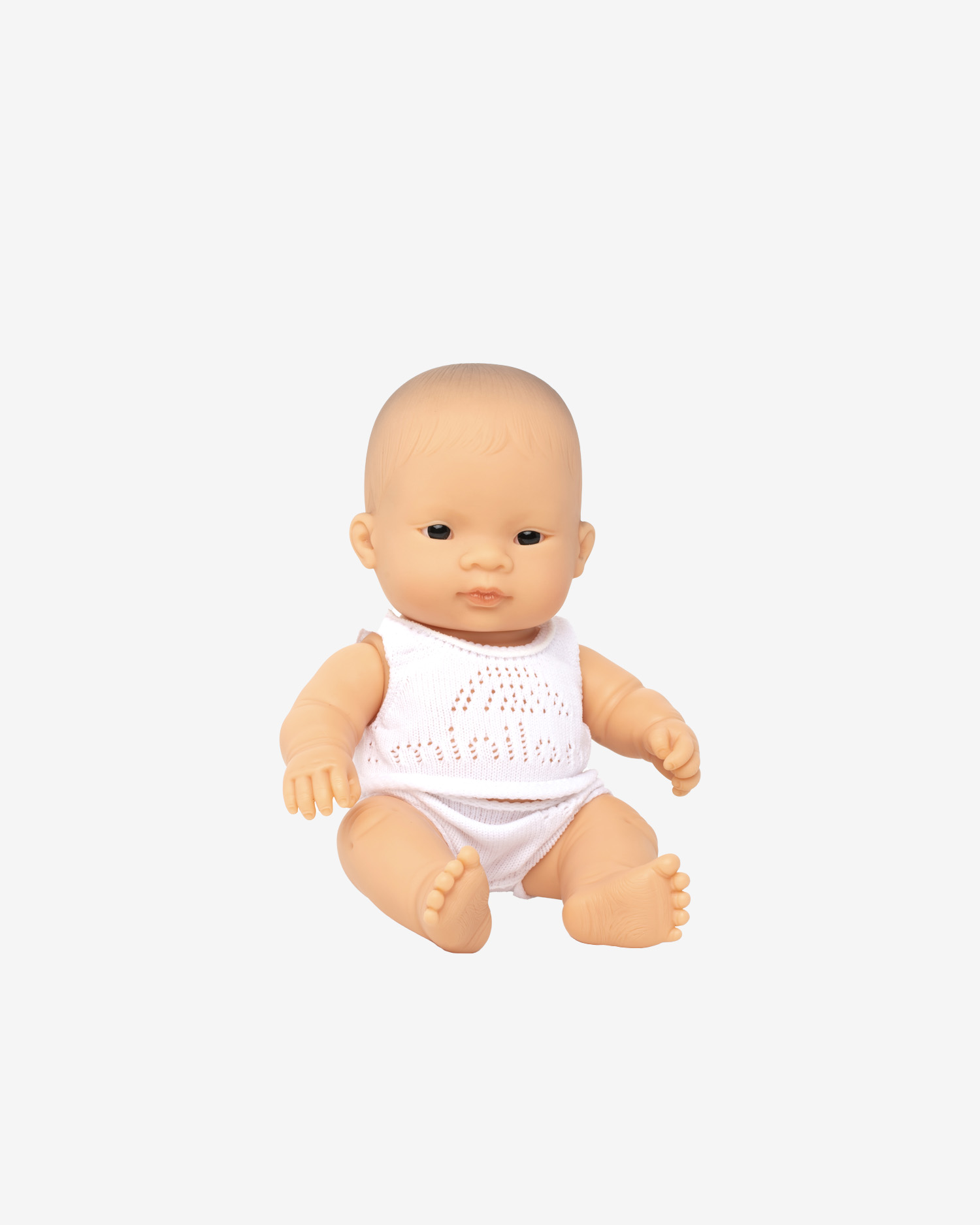 ♡ Bobas dziewczynka Azjatka posiada jasną skórę i brązowe oczy.