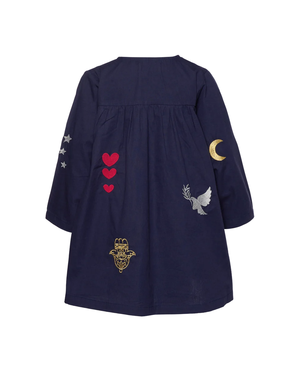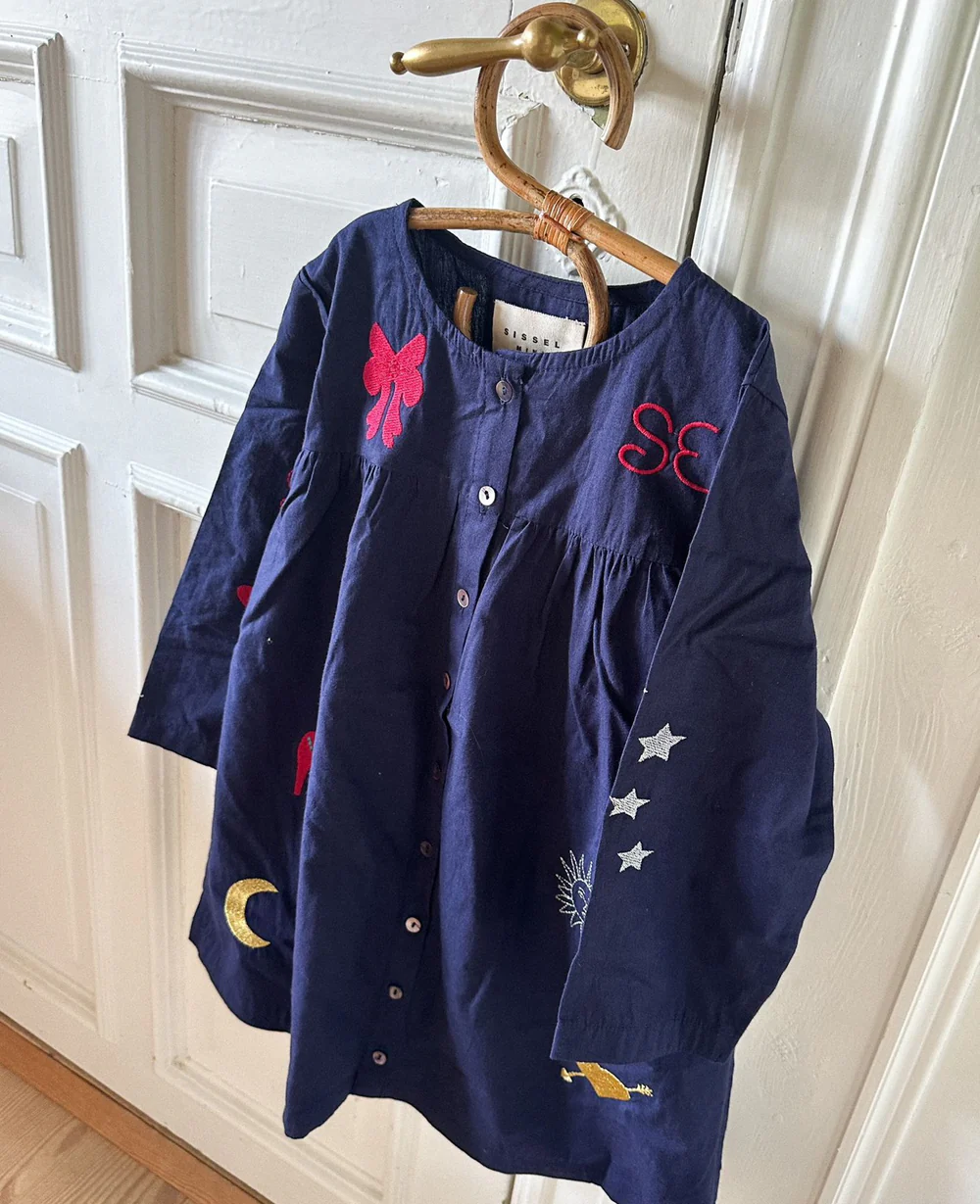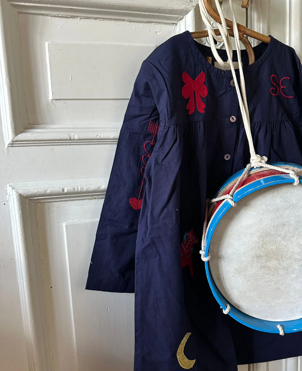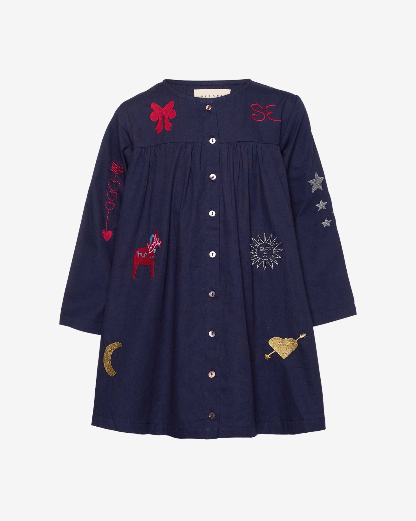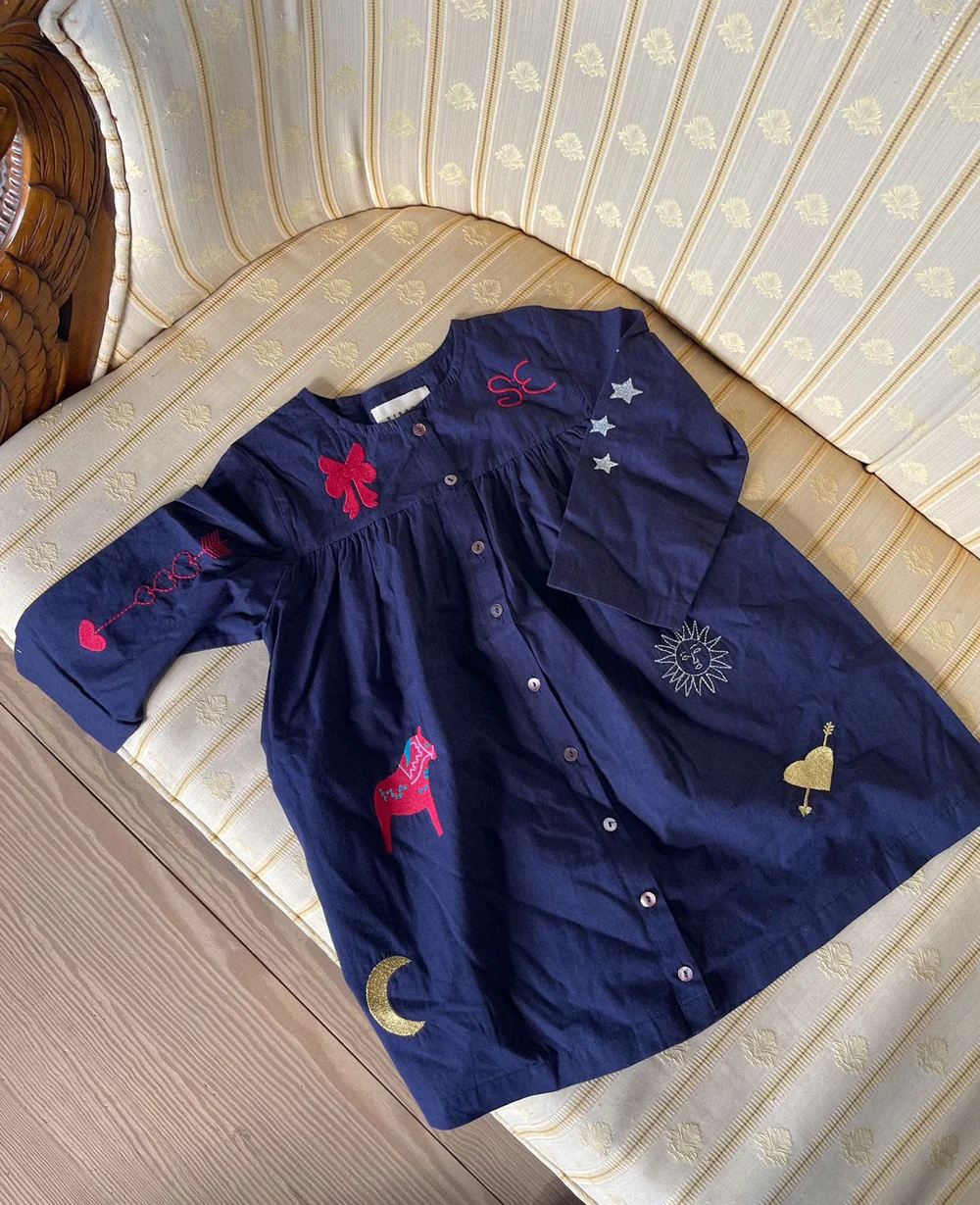 Urocza świąteczna sukienka dla dzieci z delikatnymi haftami od duńskiej marki Sissel Edelbo.