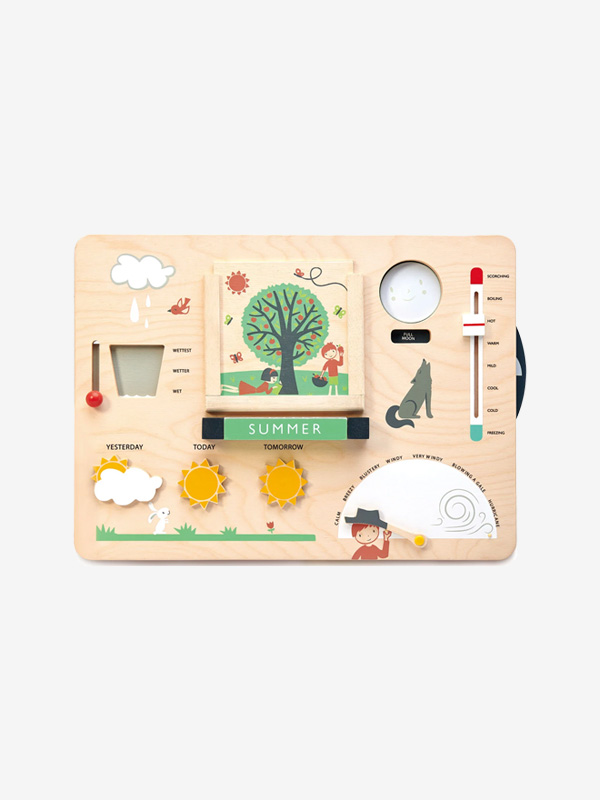 Drewniana stacja to idealna zabawka do nauki o porach roku i pogodzie.