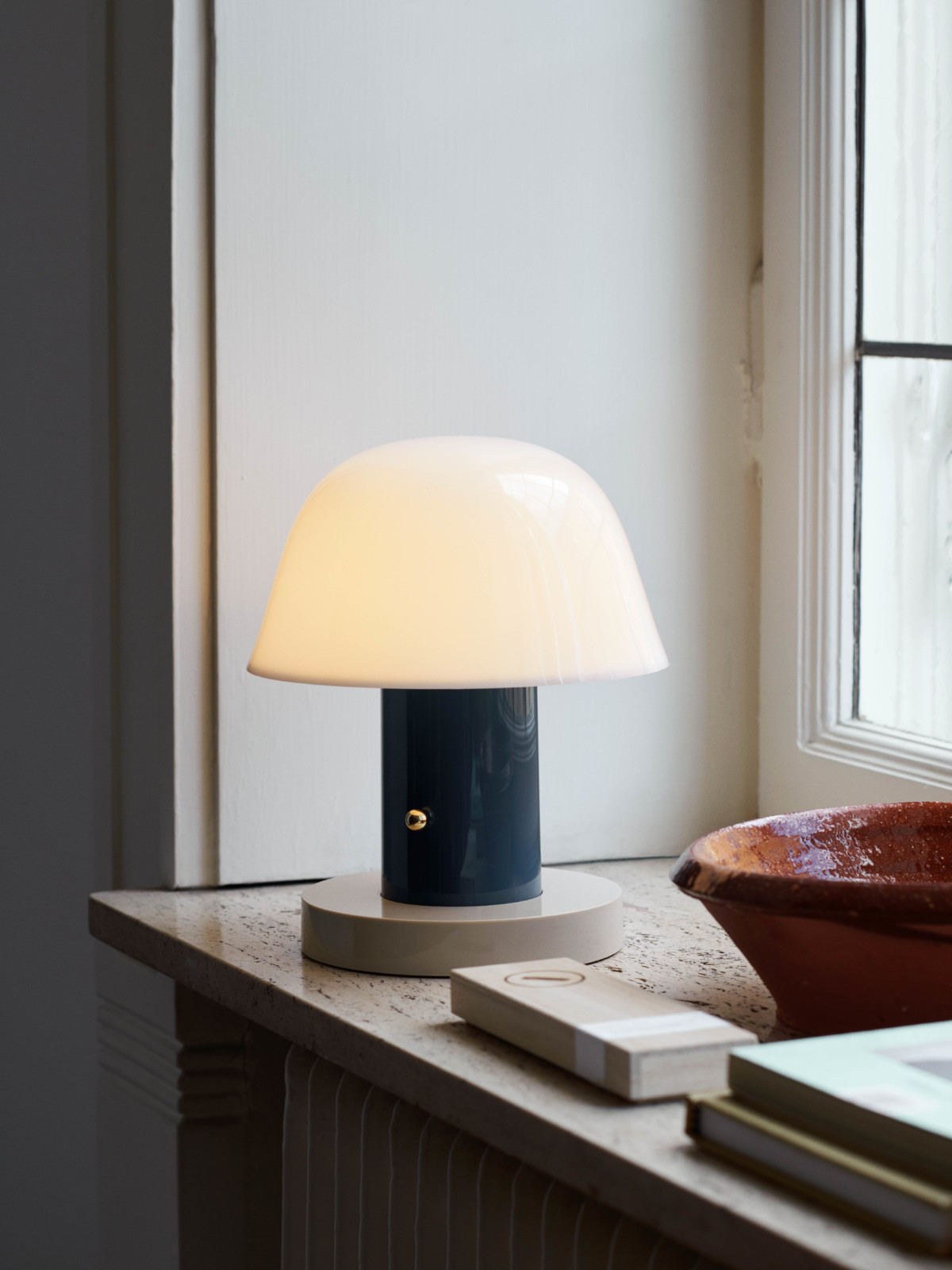 Setago to mała, bezprzewodowa lampa w stylu retro o zaokrąglonych kształtach i kolorach zainspirowanych naturą.