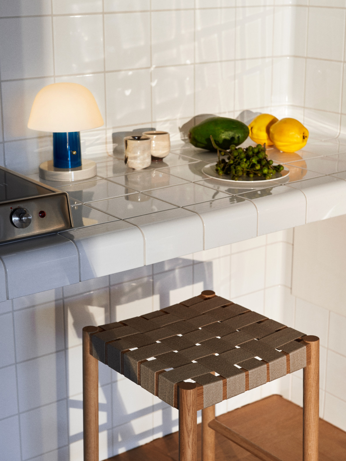 „Seta” – hiszpańskie słowo oznaczające grzyb – nadaje ton drobnym, przypominającym grzyby proporcjom tej uroczej lampy stołowej. Zagłęb się w tożsamość Setago, a kolejną wskazówkę znajdziesz w przyrostku „go”, ponieważ tę lampę, nieobciążoną przewodem elektrycznym, można umieścić w nieskończonej liczbie miejsc.