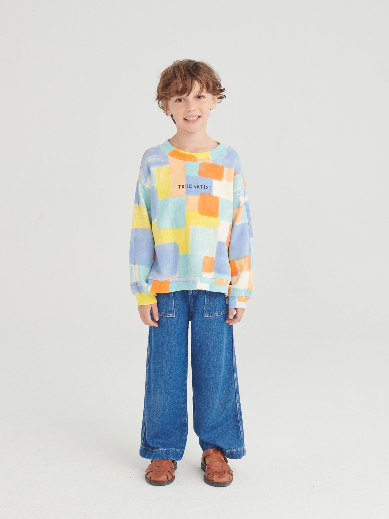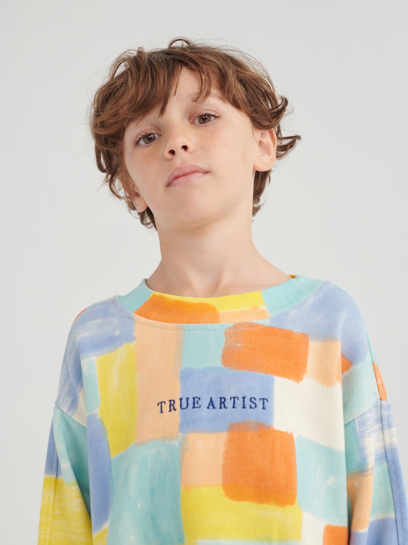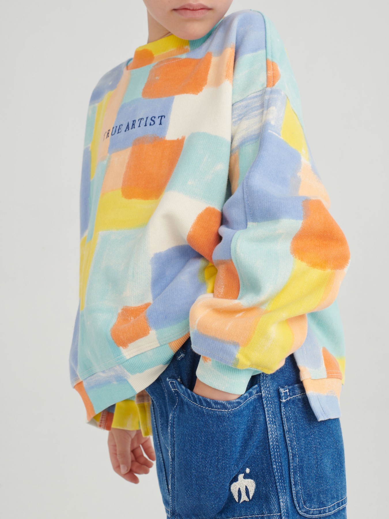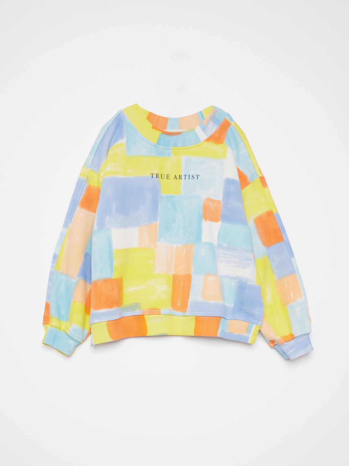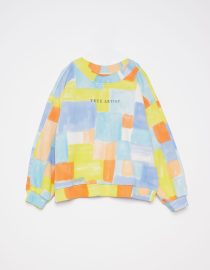 Miękka bluza dla dzieci o luźnym kroju. Ma rękawy zakończone ściągaczami.