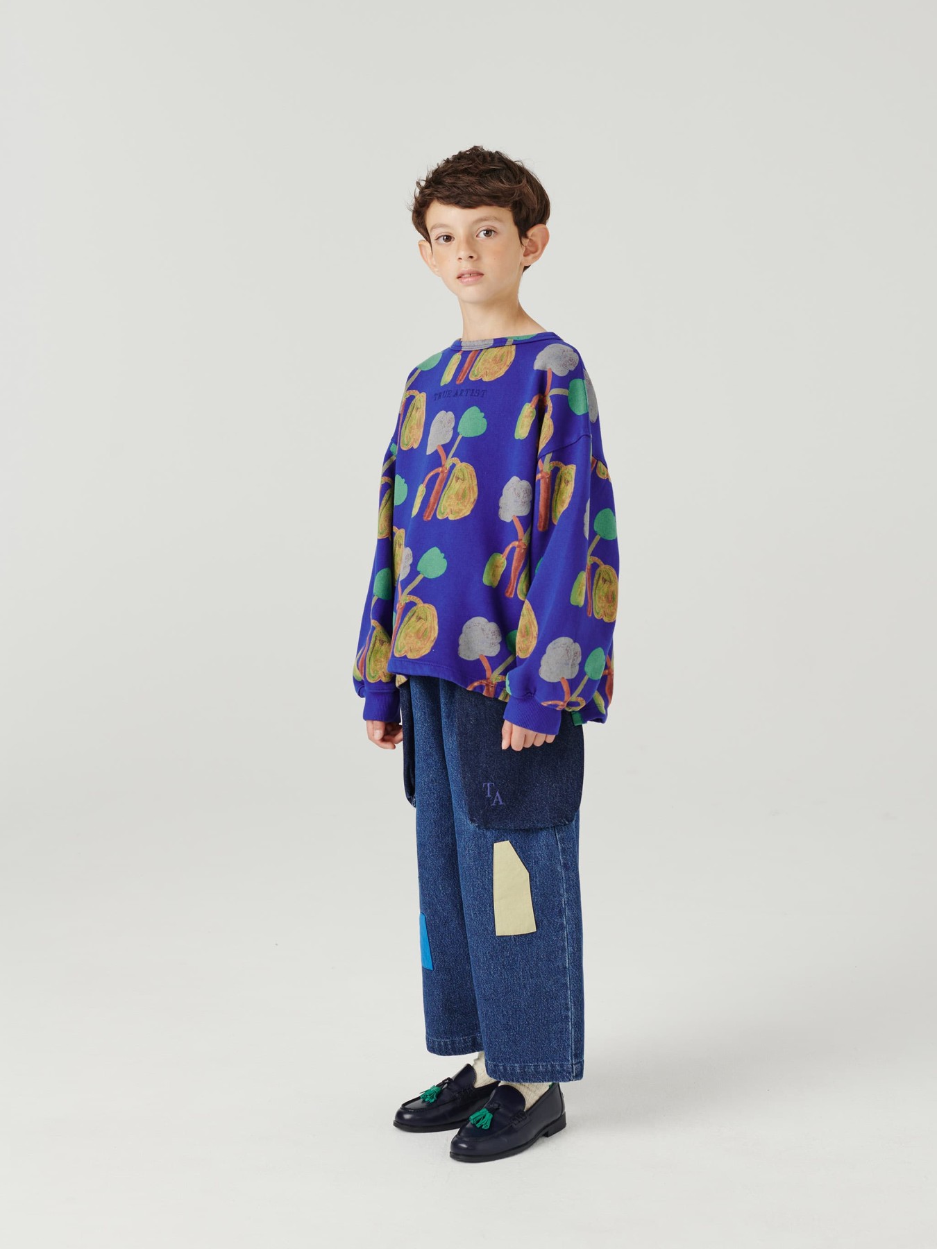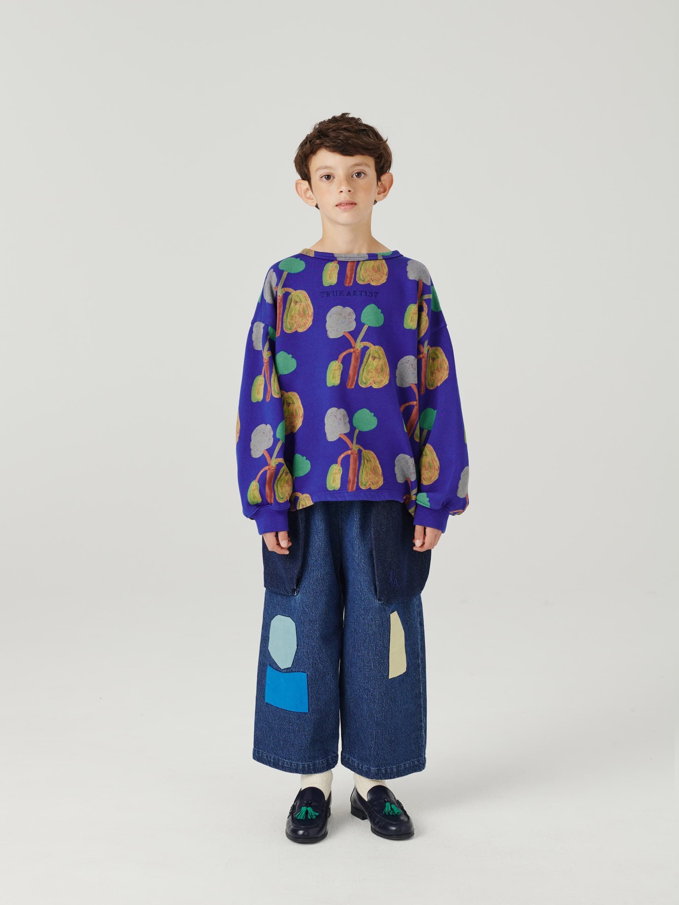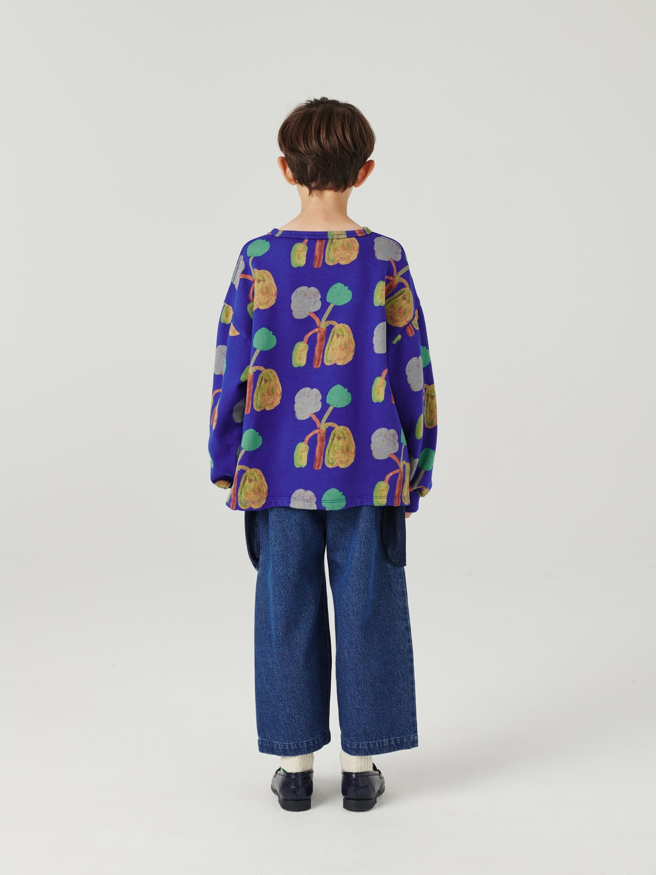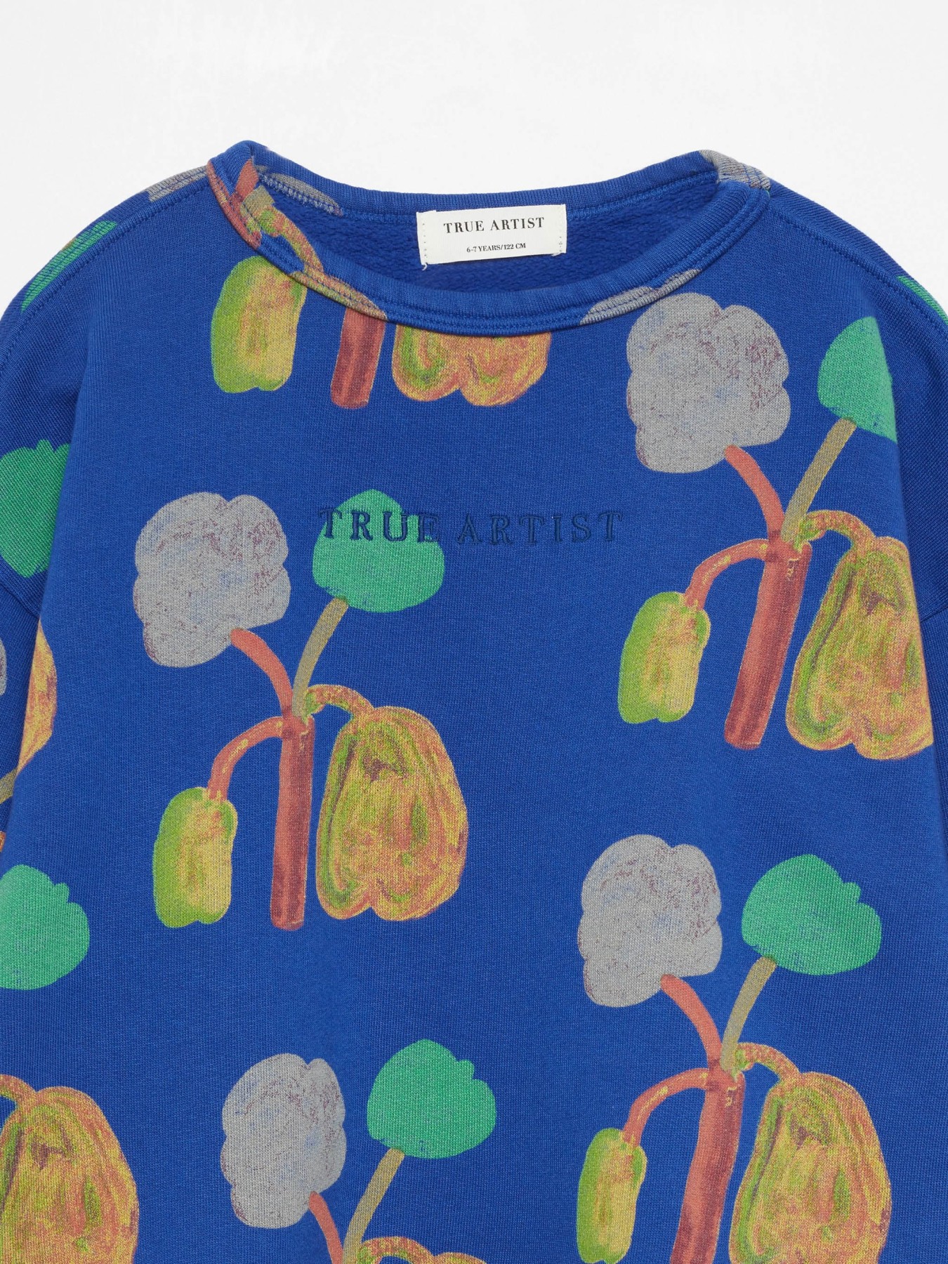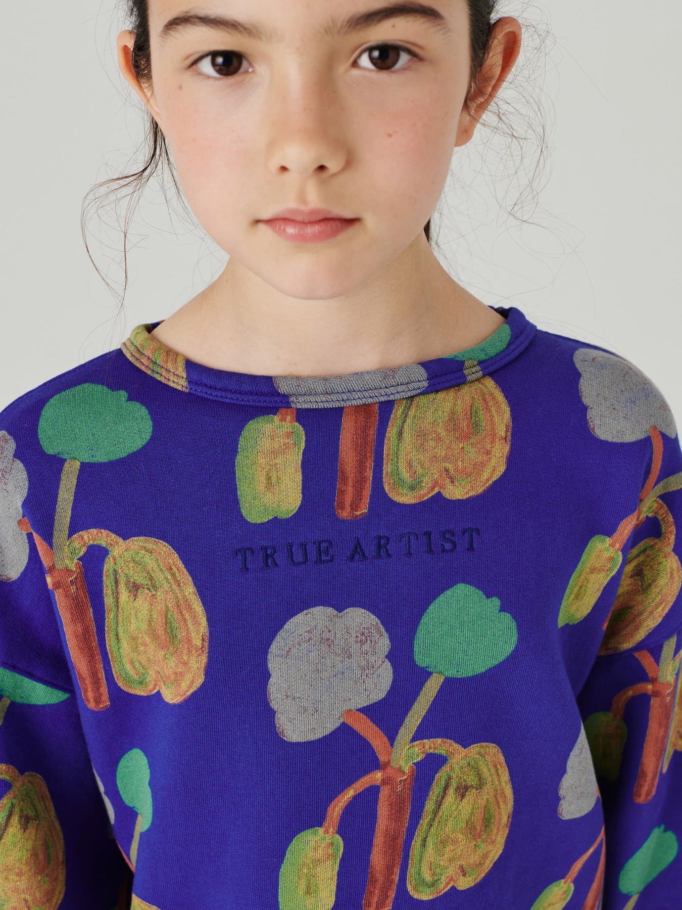 Miękka bluza dla dzieci o luźnym kroju. Ma rękawy zakończone ściągaczami.
