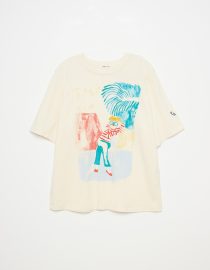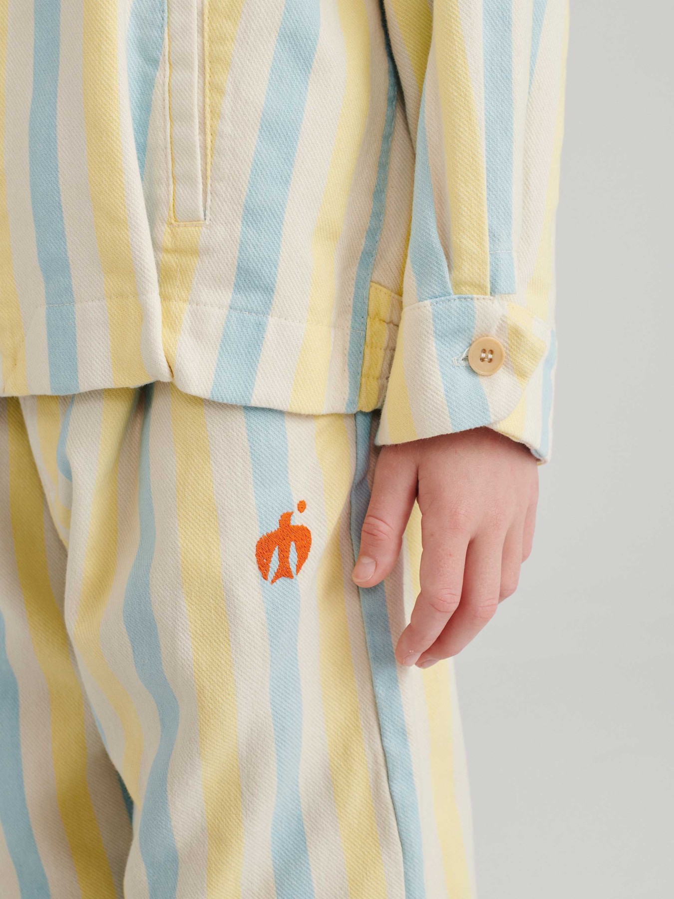 Spodnie o luźnym kroju w nadruk w paski na całej powierzchni i wyhaftowane logo ptaka z przodu. Mają zapięcie na guziki, kieszenie z wycięciem i luźny krój.